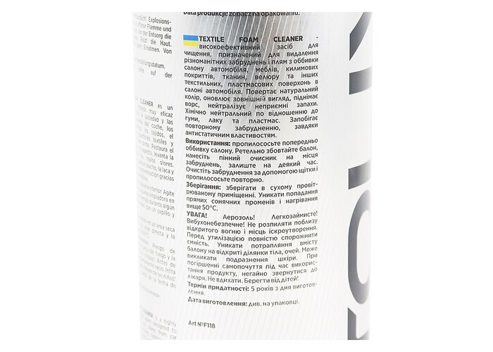 Очисник оббивки салону багатофункціональний "TEXTILE FOAM CLEANER", Аерозоль 650ml виробництва AUTOLIVE