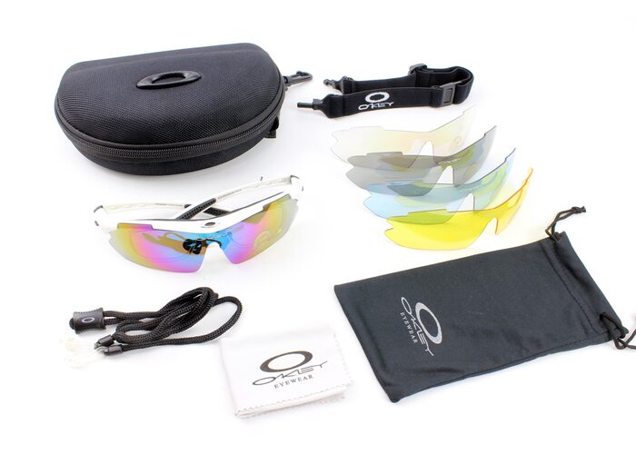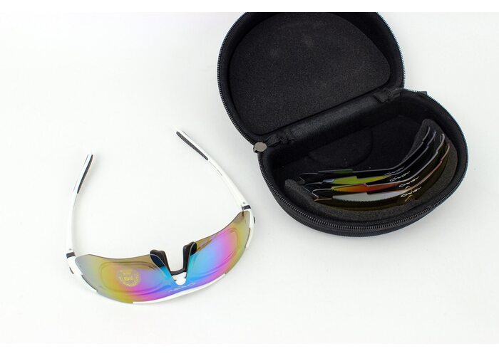 Окуляри з набором для догляду, змінні лінзи 5шт, у твердому чохлі, білі НЕ оригінал виробництва Oakley