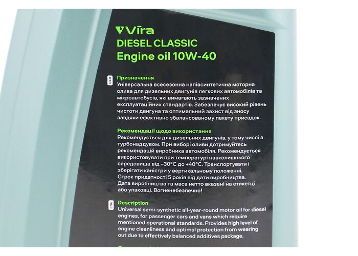 Олива 4T 10W-40 - напівсинтетична універсальна "DIESEL CLASSIC", 1L виробництва Vira