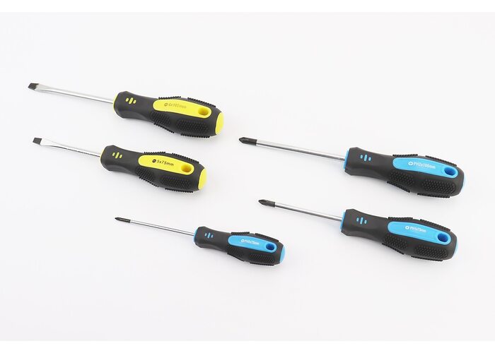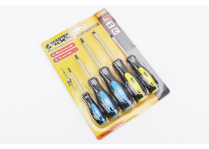 Викрутки набір 5шт PH0/PH1x75мм PH2x100мм SL5x75мм SL6x100мм 40-1505 виробництва MASTERTOOL