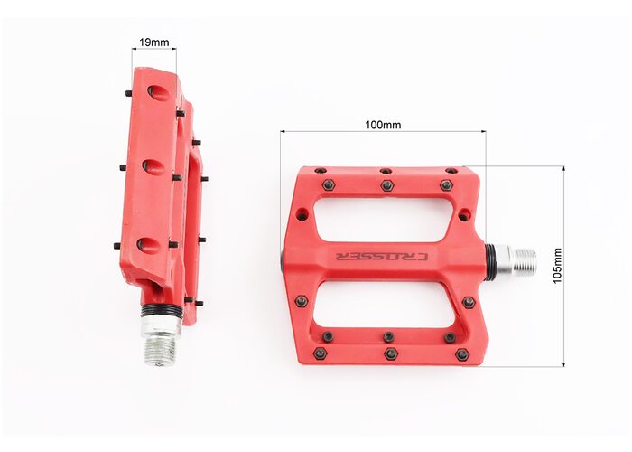 Педалі MTB широкі 9/16" (100x105x19mm) армопластик, пром-підшипник (6*13*5). червоні HF-633 виробництва CROSSER