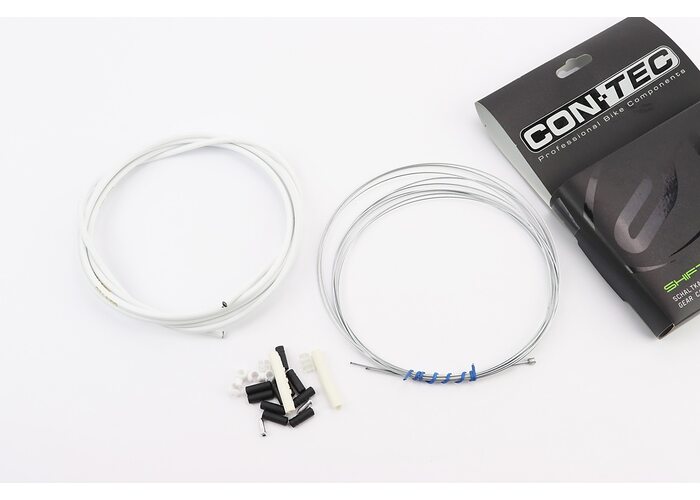 Трос - комплект перемикання універсальний "ПОВНИЙ" (сорочка 4мм х 2,7м, троса Galvanize 2000/2300мм, ковпачки, кінцевики, фіксатори, захист рами), білий виробництва CON-TEC