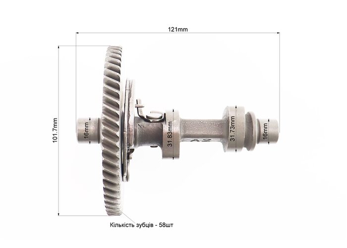 Розподільний вал з шестернею в зборі Z-58, метал 173F/177F/182F/188F/190F виробництва Китай