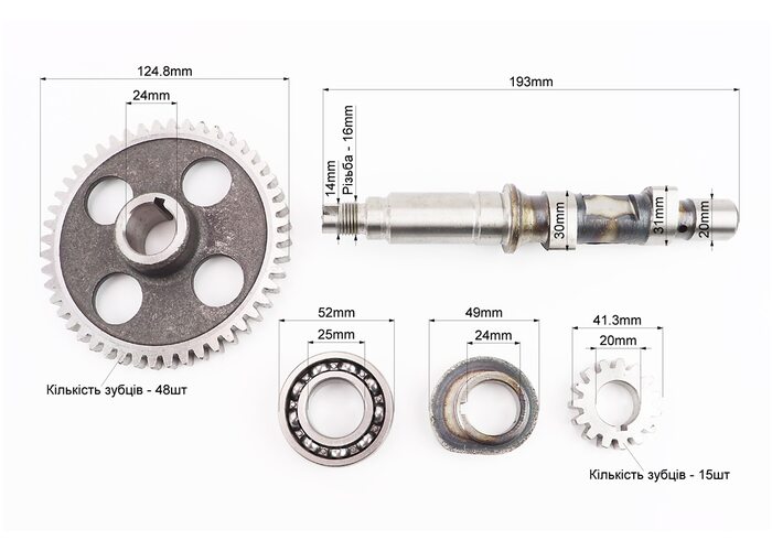 Розподільний вал + шестерня Z-15, d-20mm + шестерня Z-48, d-24mm + кулачок + підшипник 6205 R175A/R180NM виробництва Viper