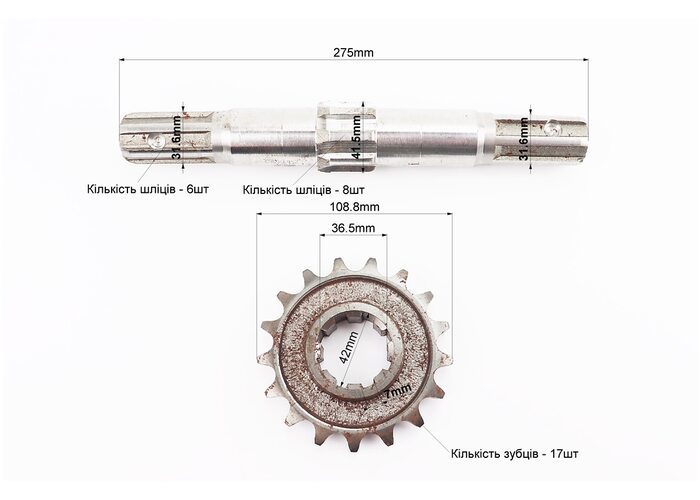 Редуктор фрези R175/180N/190N/195N - Вал вторинний + зірка Z-17 81-1, 101-2 виробництва Viper
