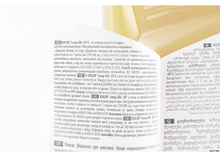 Рідина охолоджуюча -35°C "АНТИФРИЗ K2 Kuler Long Life G13", жовта 1L виробництва K2