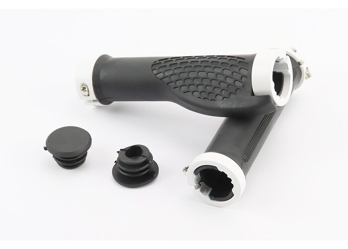 Ручки керма 130мм з затискачем Lock-On з двох сторін, ергономічні, чорно-білі виробництва Китай