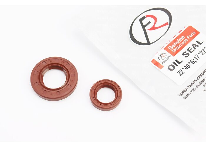 Сальники к-кт 2шт (17x27x6; 22x40x6) двигуна, Suzuki LET'S, коричневі виробництва FENGRI