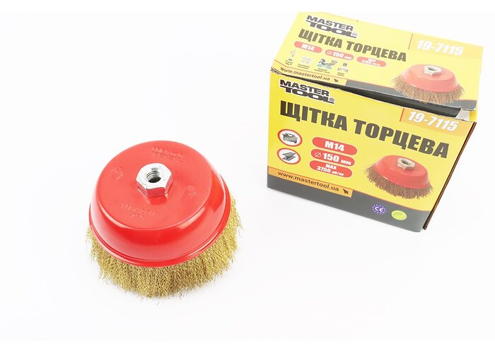 Щітка торцева М14 D-150мм з латунованого рифленого дроту 19-7115 виробництва MASTERTOOL