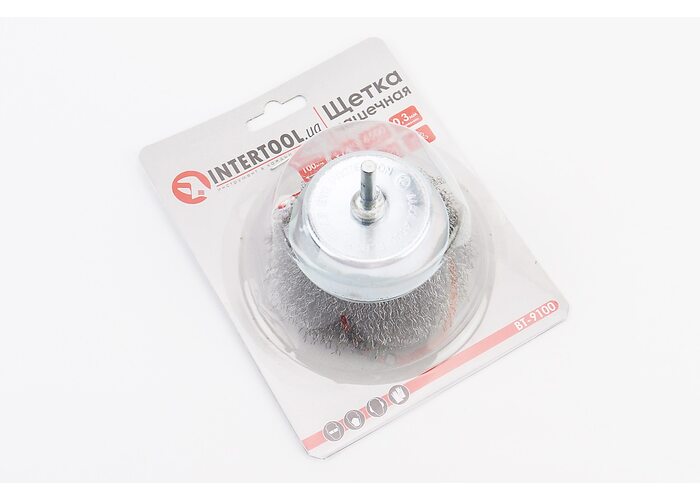 Щітка торцева зі стрижнем 1/4" D-100мм з рифленого дроту BT-9100 виробництва INTERTOOL