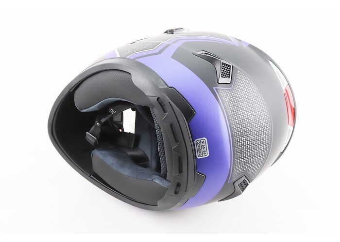 Шолом інтеграл, закритий+окуляри BLD-М61 S (55-56см), ЧОРНИЙ матовий з синьо-сірим малюнком виробництва BLD