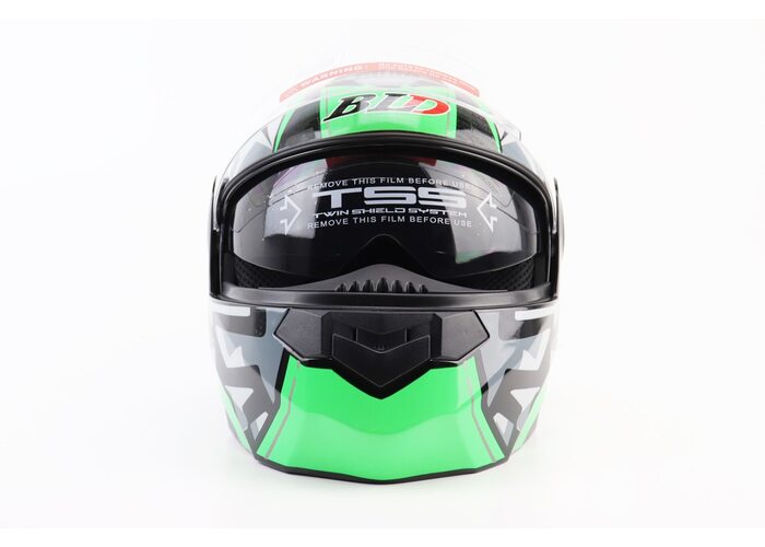 Шолом модуляр, закритий з відкидним підборіддям + відкидні окуляри BLD-159 S (55-56см), ЧОРНИЙ глянець із зелено-сірим малюнком виробництва BLD