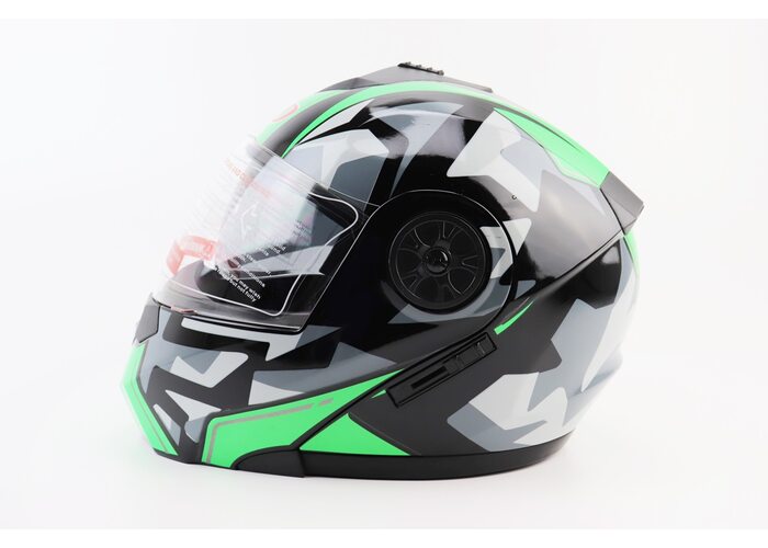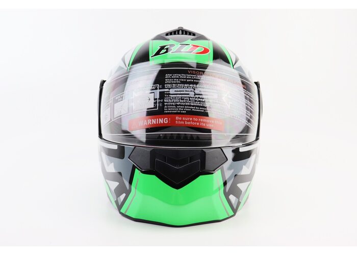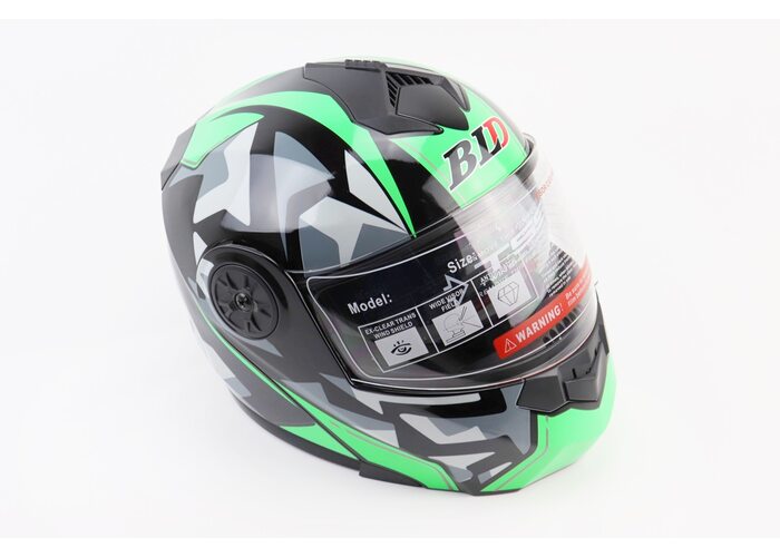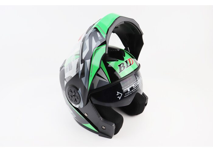 Шолом модуляр, закритий з відкидним підборіддям+відкидні окуляри BLD-159 S (55-56см), ЧОРНО-ЗЕЛЕНИЙ виробництва BLD