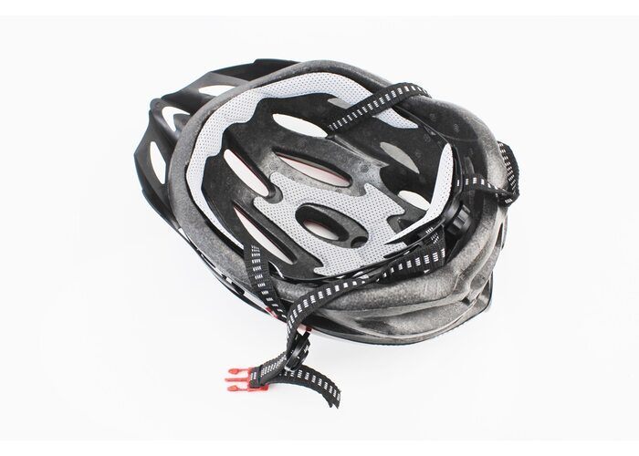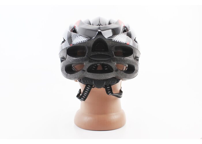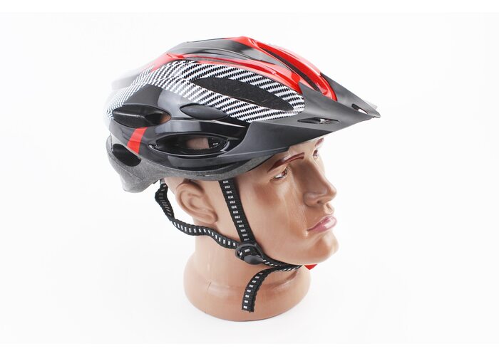 Шолом велосипедний L (54-62 см) знімний козирок, 21 вент. отворів, чорно-червоно-білий виробництва Китай