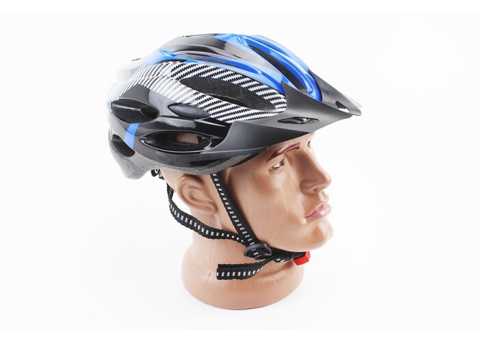 Шолом велосипедний L (54-62 см) знімний козирок, 21 вент. отворів, чорно-синьо-білий виробництва Китай
