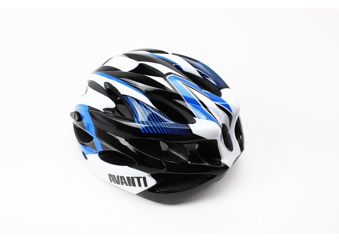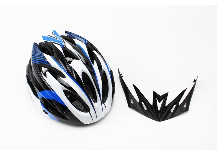 Шолом велосипедний M (54-57 см) знімний козирок, 18 вент. отворів, чорно-біло-синій AV-01 виробництва AVANTI