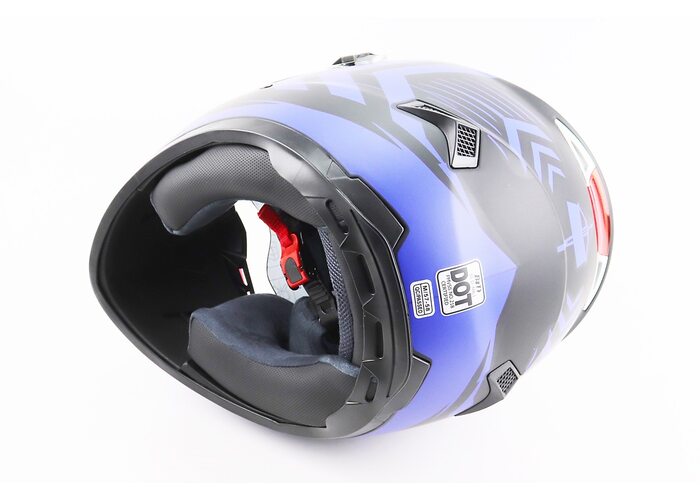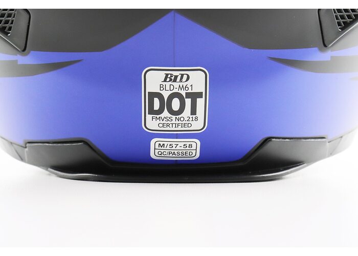 Шолом інтеграл, закритий (сертифікація DOT)+відкидні окуляри BLD-М61 M (57-58см), ЧОРНО-СИНІЙ (флуоресцентний) виробництва BLD