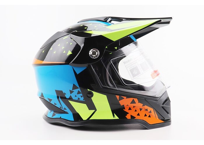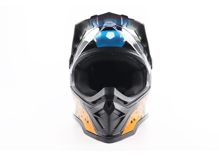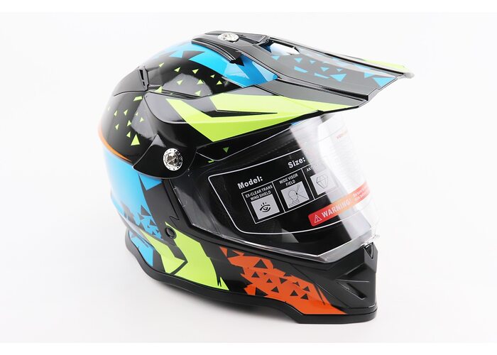 Шолом кросовий/ендуро/АТV зі склом BLD-819-7 L (59-60см), ЧОРНИЙ/ЖОВТО-СИНІЙ виробництва BLD