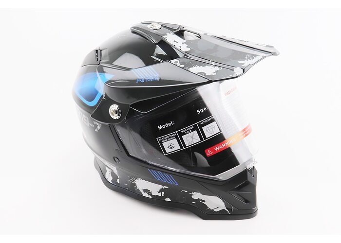 Шолом кросовий/ендуро/АТV зі склом BLD-819-7 L (59-60см), ЧОРНИЙ/СІРО-СИНІЙ виробництва BLD