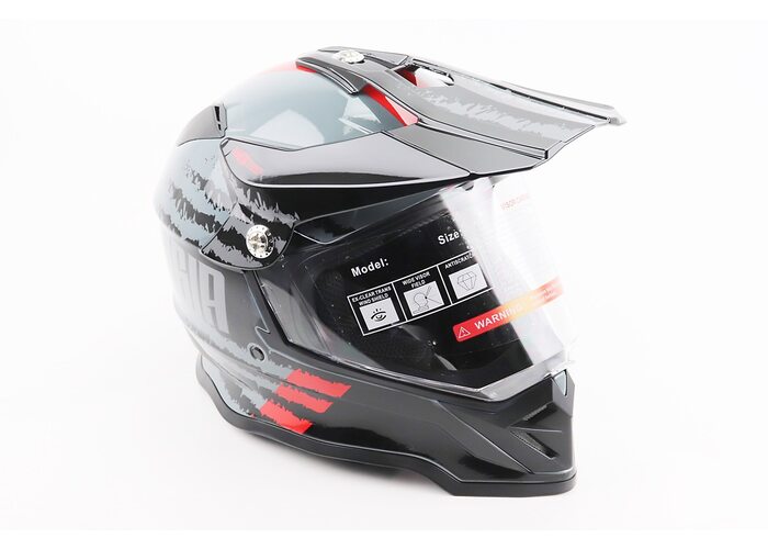 Шолом кросовий/ендуро/АТV зі склом BLD-819-7 М (57-58см), ЧОРНИЙ/СІРО-ЧЕРВОНИЙ виробництва BLD