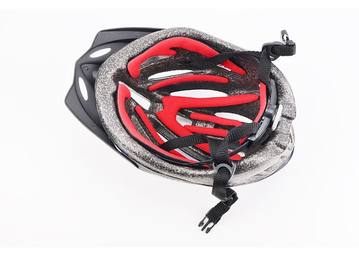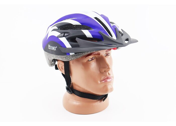 Шолом велосипедний L (54-62 см) знімний козирок, 16 вент. отворів, чорно-біло-синій виробництва KONEX