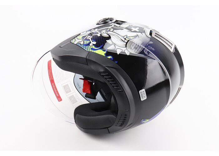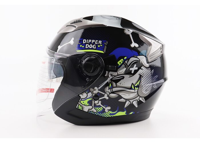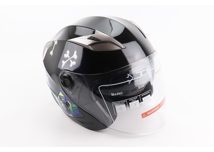 Шолом відкритий+відкидні окуляри BLD-708 М (57-58см), ЧОРНО-СИНІЙ "Bulldog" виробництва BLD