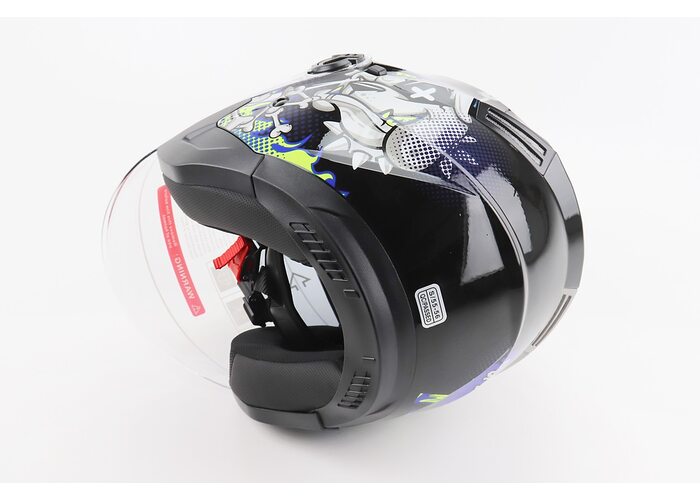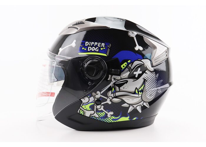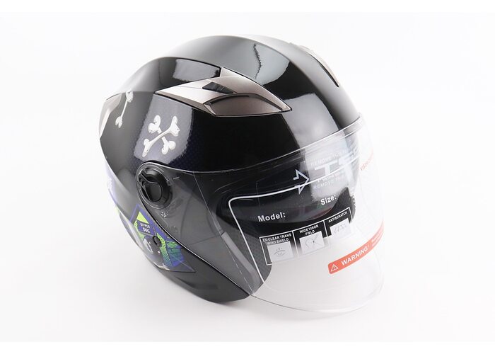 Шолом відкритий+відкидні окуляри BLD-708 S (55-56см), ЧОРНО-СИНІЙ "Bulldog" виробництва BLD
