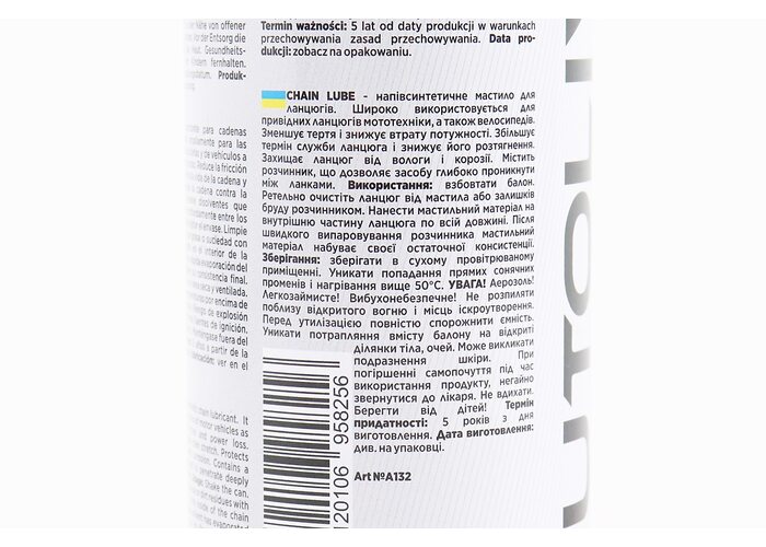 Мастило для приводних ланцюгів "CHAIN LUBE", Аерозоль 450ml виробництва AUTOLIVE