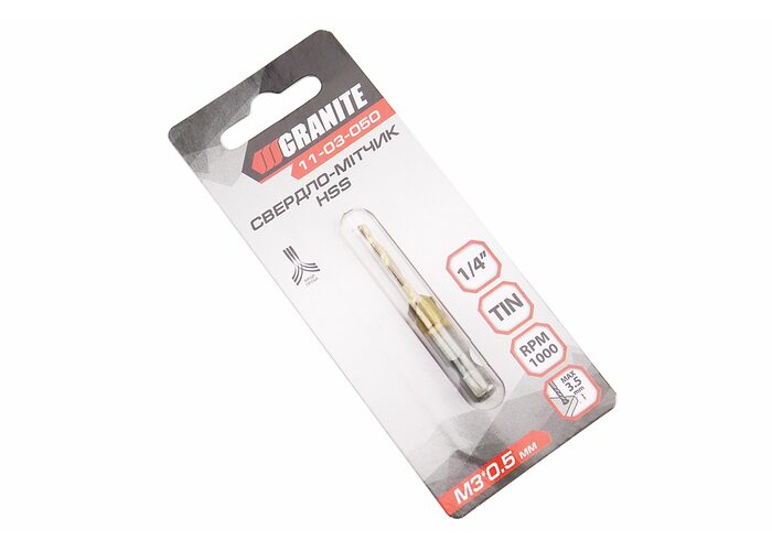 Свердло-мітчик по металу M3x0,5мм HSS DIN338 11-03-050 виробництва GRANITE