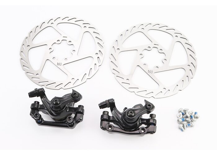 Гальмо Disk-brake переднє (F160/R140мм)+заднє (F180/R160мм), диски 160мм, кріпл. 6 болтів, чорні DX-2005 виробництва LOGAN