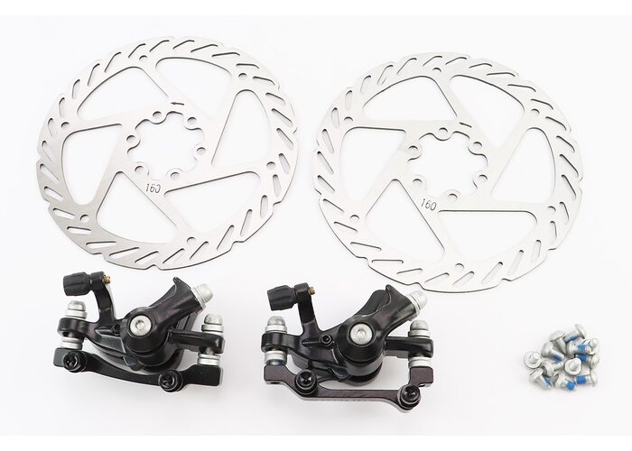 Гальмо Disk-brake переднє (F160/R140мм)+заднє (F180/R160мм), диски 160мм, кріпл. 6 болтів, чорні DX-2018, тип 2 виробництва LOGAN
