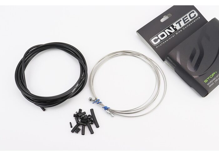 Трос - комплект гальмівний універсальний "ПОВНИЙ" (сорочка 5мм х 3м, троса Slick Stainless 1350/2350мм, ковпачки, кінцевики, фіксатори, захист рами), чорний виробництва CON-TEC