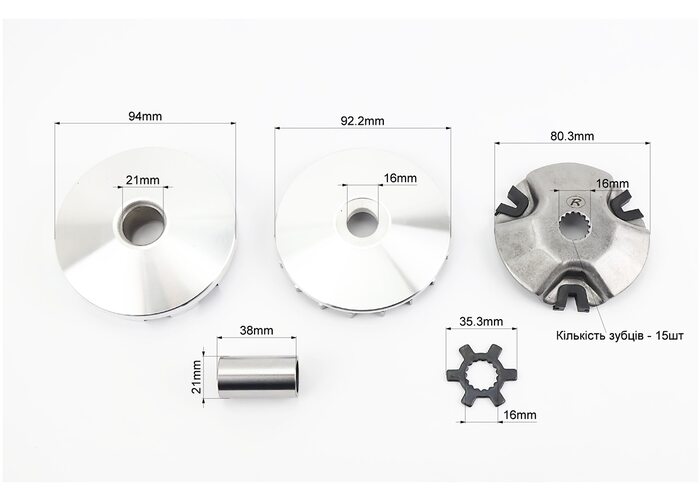 Варіатор передній к-кт Yamaha JOG 90 (під вал 16мм) + втулка, крильчатка, хрест виробництва FENGRI