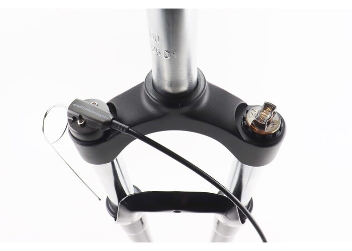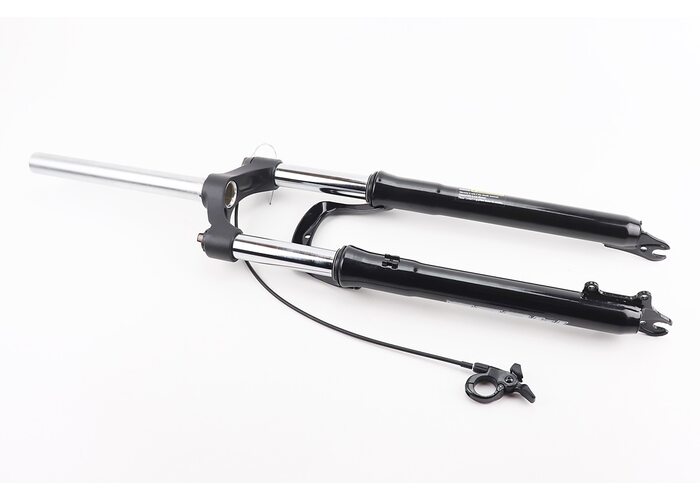 Вилка 29" амортизаційна, без різьби 1-1/8" (28,6мм), шток 255мм, з ходом 100мм, Disk-brake, пружинно-оливна, виносний Lockout, чорна N780 виробництва Китай
