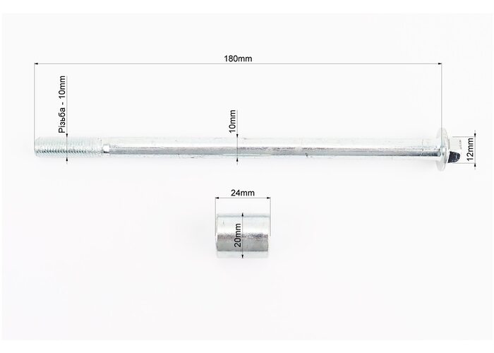 Вісь переднього колеса d10mm; L185mm + втулка, гайка, тип 2 виробництва PRC