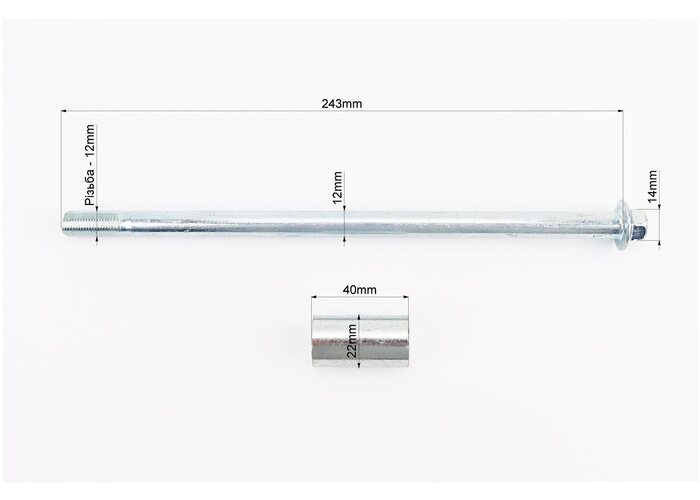 Вісь переднього колеса d12mm; L243mm + втулка, гайка виробництва PRC