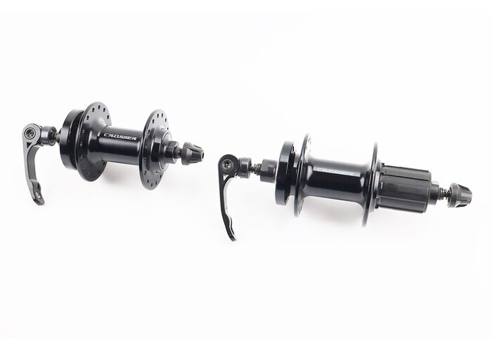 Втулки задня+передня MTB алюмінієва 14Gx32H під касету 8зр, Disk-brake, 2 пром-підшипники 6000 2RS, кріп. ексцентрик, чорна виробництва CROSSER