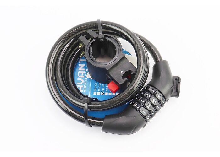 Замок протиугінний тросовий 1200х10мм з 4-х значним кодом, кріплення за трубу сидіння, AGL-705 виробництва AVANTI