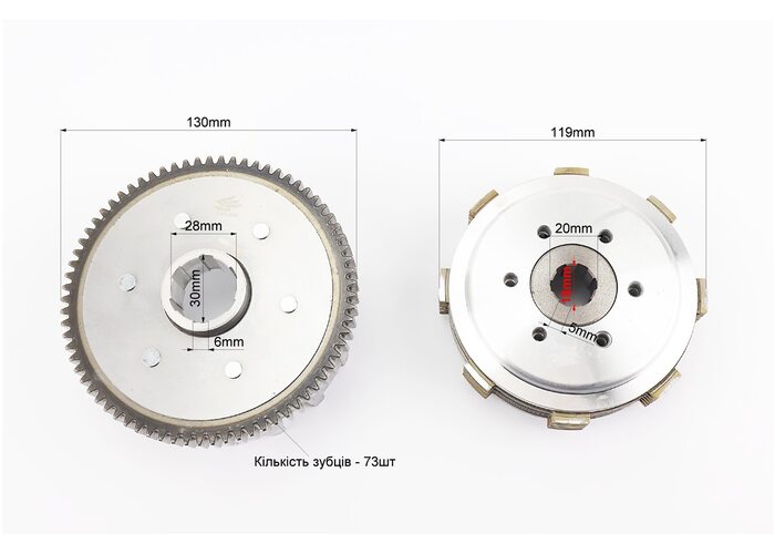 Зчеплення, маховик у зборі (6 болтів, маховик 73T) CB-150/200cc, тип 1 виробництва ZHENGHE