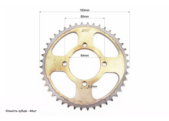 Зірка задня RS125 - 428-44T - d=64; 4отв.*80mm "гартована" Loncin JL200-10/Yamaha YBR125 виробництва SFR