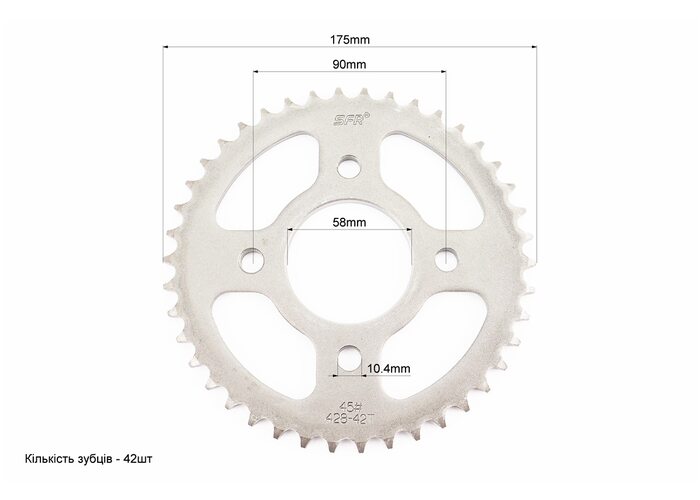Зірка задня WY125 - 428-42Т - d=58; 4отв.*90mm (ZS125J спиці/BOXER ВМ/ВМX) виробництва SFR