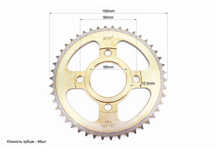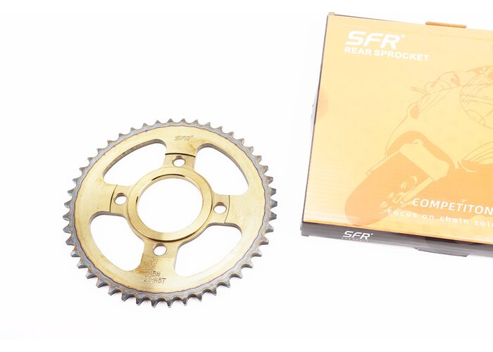 Зірка задня WY125 - 428-46Т - d=58; 4отв.*90mm "гартована" (ZS125J спиці) виробництва SFR