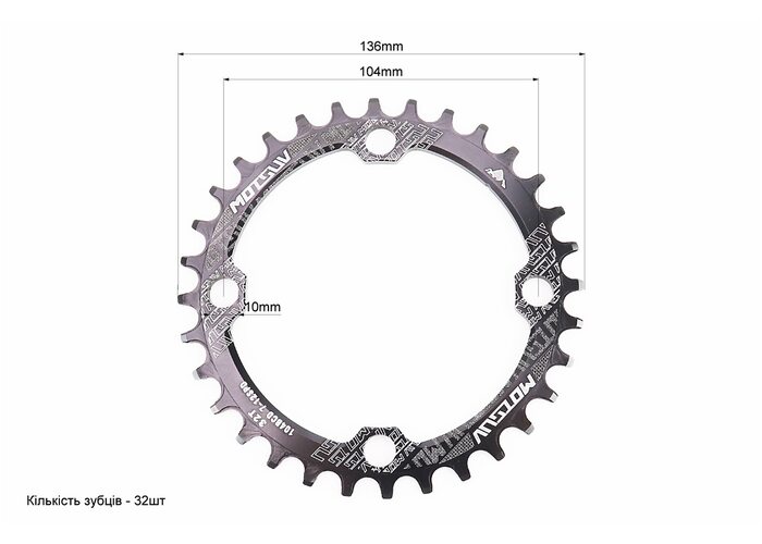 Зірка передня MTB Narrow Wide 32Т (BCD:104мм), алюмінієва, чорна виробництва Motsuv