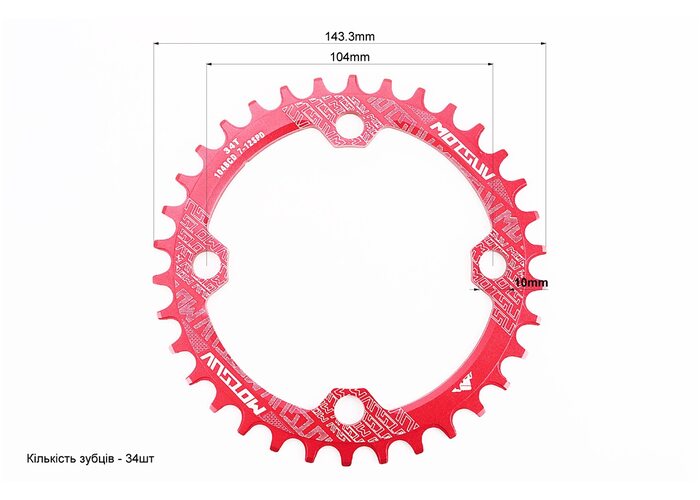 Зірка передня MTB Narrow Wide 34Т (BCD:104мм), алюмінієва, червона виробництва Motsuv
