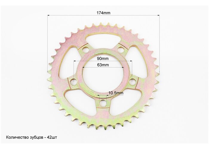 Зірка задня 428-42T - d=63; 5отв.*90,5mm V200CR; V250CR (жовтий метал) виробництва Китай
