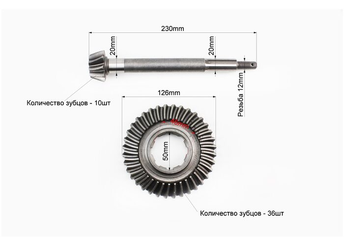 Вал полуоси первичный Z-10 + Шестерня полуоси вторичного вала Z-36 к-кт производства Viper