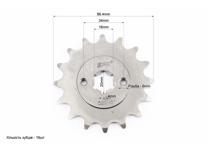 Звезда передняя 520H-16T (шлиц 4мм), PULSAR P-180/NS-200/AVENGER 220cc производства SFR