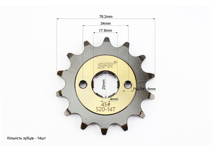 Звезда передняя CG/CB-520H-14T (шлиц 4мм) "закаленная" Loncin LX200GY-3 производства SFR