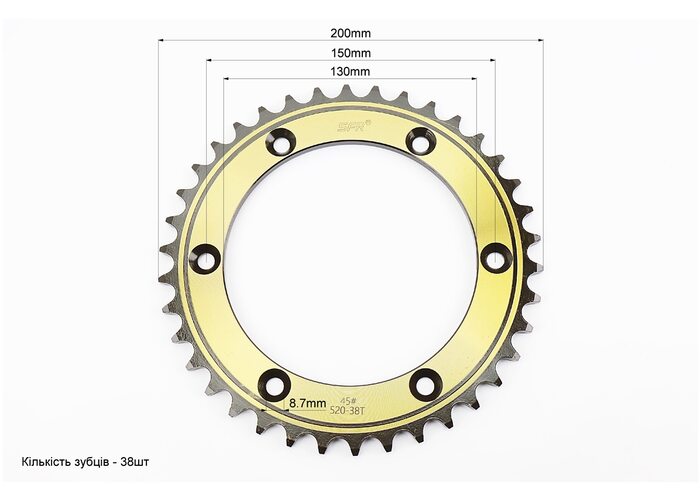 Звезда задняя 520-38T - d=130; 6отв.*150mm "закаленная" Viper V250VXR; GEON X-Road 200-250 производства SFR