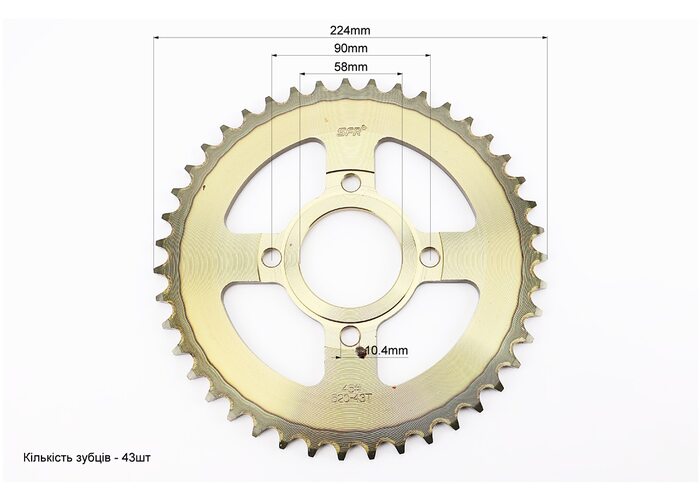 Звезда задняя 520-43T - d=58; 4отв.*90mm "закаленная", PULSAR P-180cc/Loncin- LX200GY-7A производства SFR